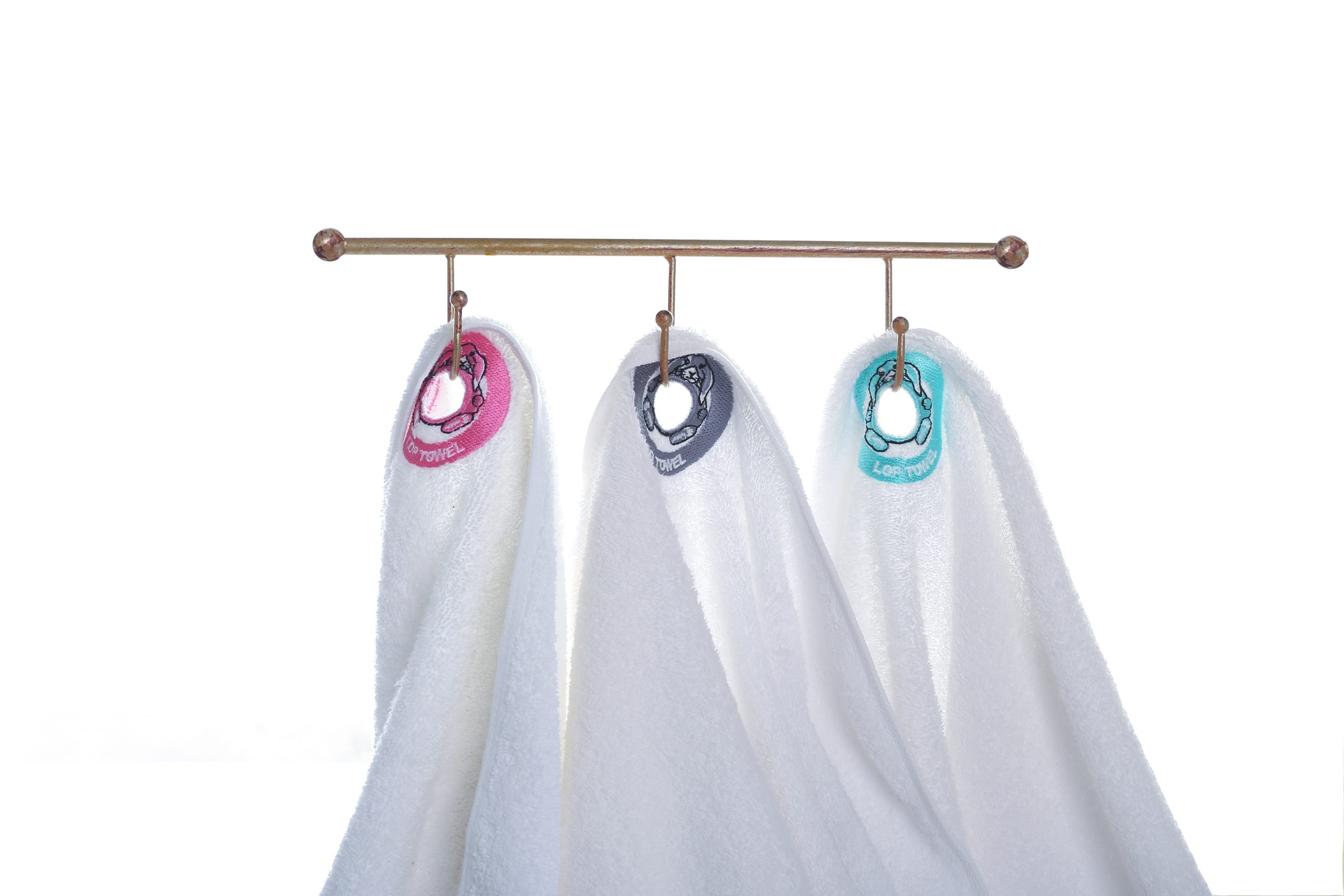 מגבת לולאות היא מגבת איכותית שתפורה עם חור במרכז החלק העליון של המגבת כדי לאפשר תליה נוחה וסביב החור היא שזורה בצבעים שונים